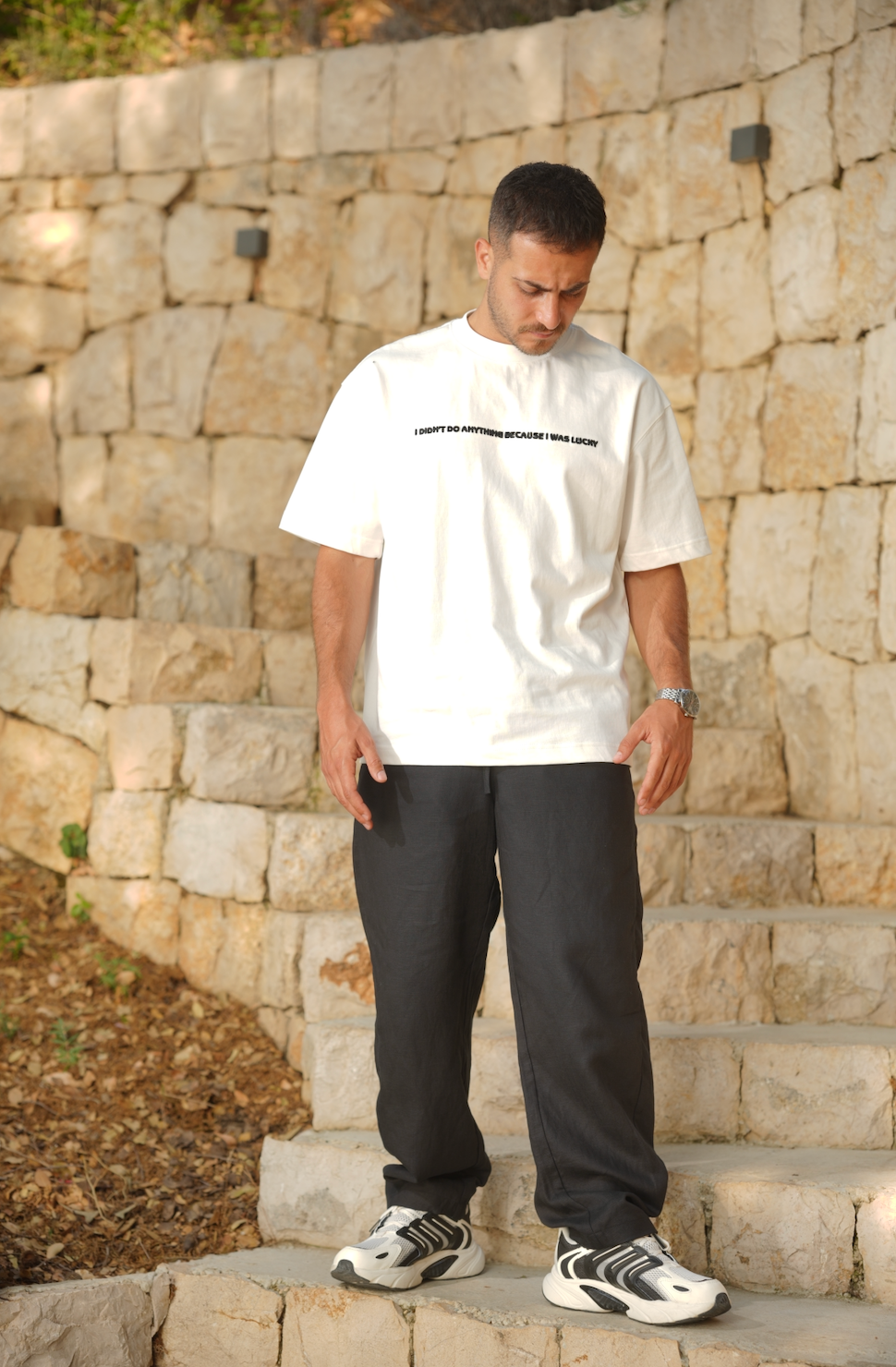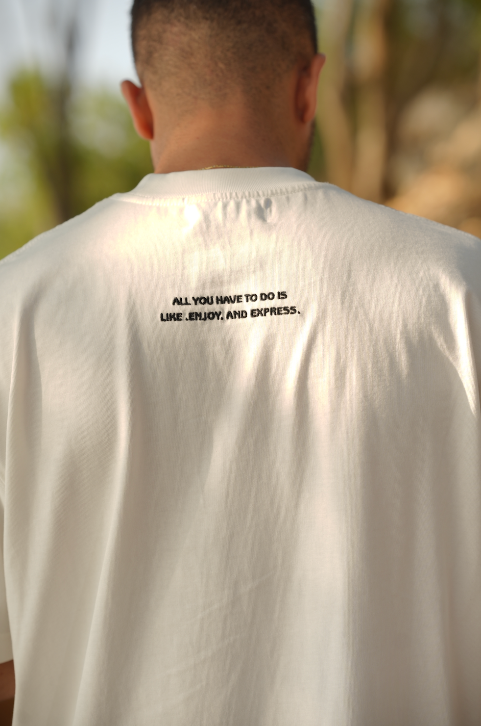 A heavyweight cotton tee with a minimal front quote that speaks volumes.